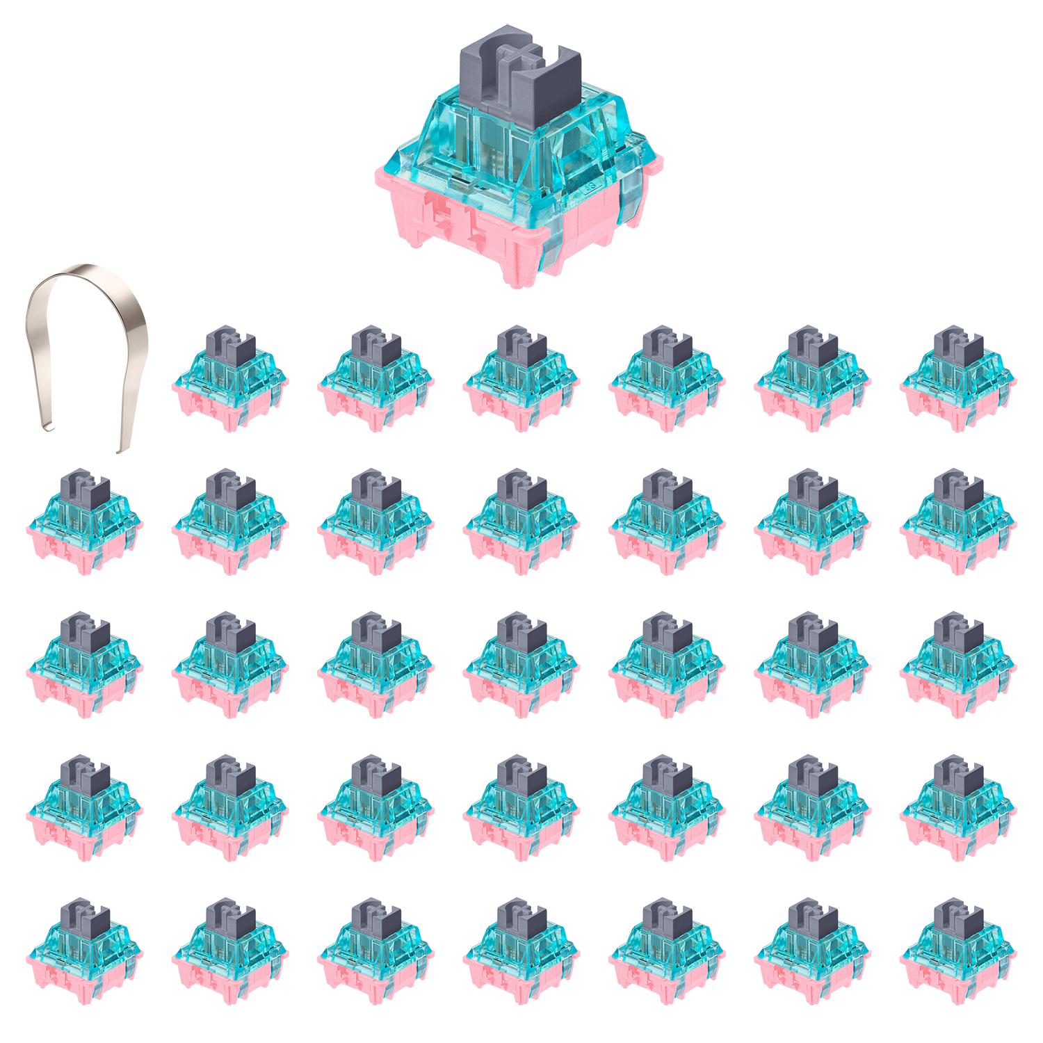 - חבילת סוויצ'ים (מתגים) KTT, מסוג Rose-Silver המתאימים גם לגיימינג וגם לעבודה ביתית \ משרדית עם דגש על גיימינג. מתגים אלו עושים שימוש במכאניזם שונה